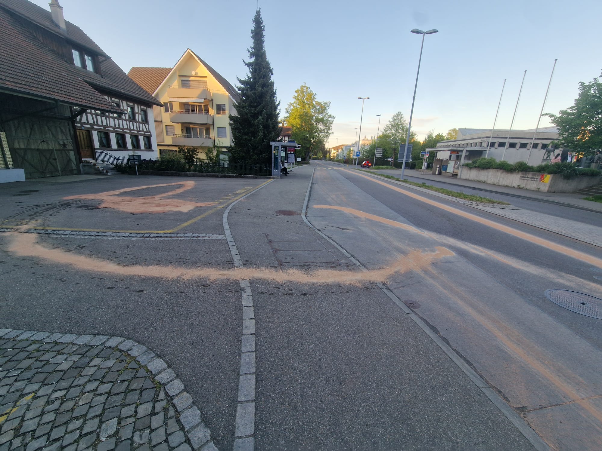 Am Sonntag wurden wir zu einer Ölspur gerufen. Respektive in diesem Fall war gleich schon zu beginn klar, dass es sich um Diesel handelt. Ein Fahrzeug verlor unterwegs Diesel und hinterliess so eine Spur auf der Strasse. Glücklicherweise merkte der Fahrer, dass er Flüssigkeit verlor und hielt auf einem Parkplatz an.